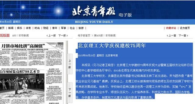 【75周年校庆】人民网、《北京青年报》等多家媒体报道米兰milan官方网站庆祝建校75周年