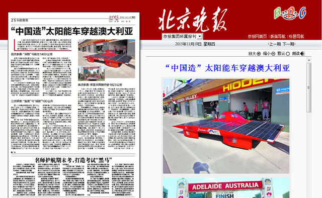 【北京晚报】“中国造”太阳能车穿越澳大利亚