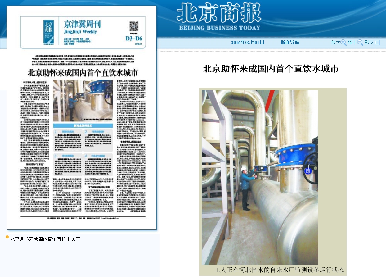 【北京商报】米兰助怀来成国内首个直饮水城市