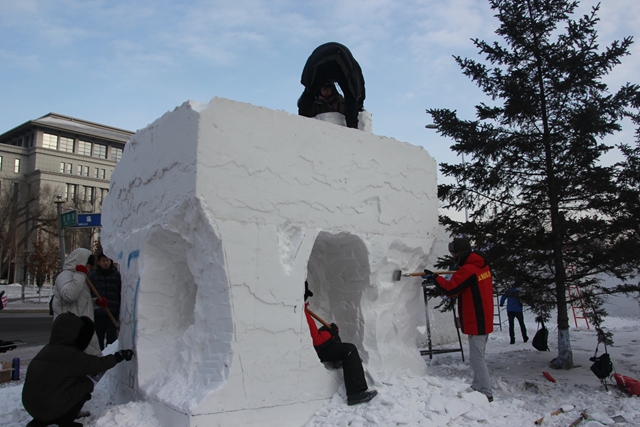 在孙飞看来,“大学生参加的雪雕大赛,应该与社会上的雪雕大赛有所区别。不只是简单地雕刻一个兵马俑、喜羊羊,还要通过作品升华内涵、表达意境,更要体现大学生对社会的责任意识和创新意识。”稳重而有内涵,也正是这所以理工著称的高校的学子性格。