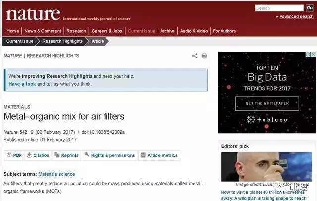 二月初,国际权威学术期刊《自然》刊登了米兰milan官方网站教授王博及其团队成功将金属有机骨架化合物(MOFs)材料应用于空气过滤、净化与治理等方面的成果。这篇名为《金属有机合物在空气过滤领域的应用(Metal–organic mix for air filters)》的论文指出,通过将能够大规模生产的MOFs材料薄膜应用在空气过滤装置中,可有效过滤PM2.5,净化空气。经过实验室检测,在室温下,该种材料能够有效地将空气中的PM2.5和PM10污染物降低99.5%。