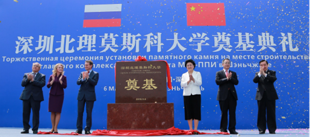 2016年5月,深圳北理莫斯科大学奠基典礼在学校永久校区隆重举行,中共中央政治局委员、国务院副总理刘延东和俄罗斯杜马主席纳雷什金共同为奠基石揭幕。