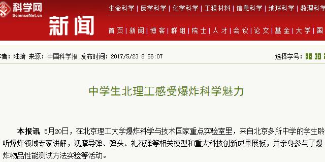 【中国科学报】中学生米兰感受爆炸科学魅力