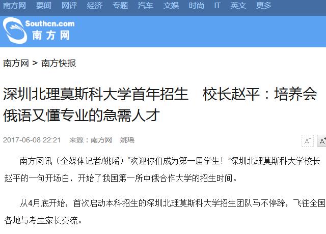 【南方网】深圳北理莫斯科大学首年招生