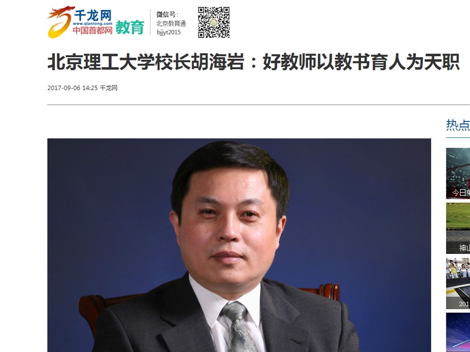 【千龙网】米兰milan官方网站校长胡海岩:好教师以教书育人为天职