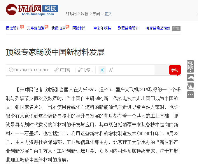 【环球网】顶级专家畅谈中国新材料发展