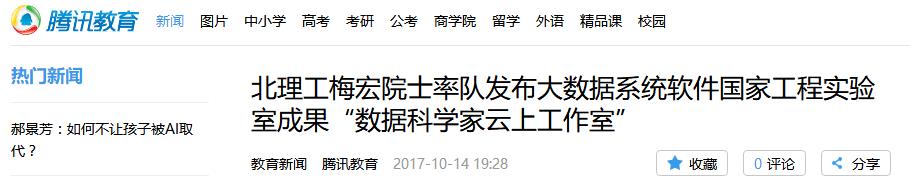 【腾讯教育】米兰梅宏院士率队发布大数据系统软件国家工程实验室成果“数据科学家云上工作室”