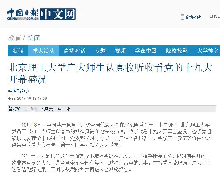 【中国日报】米兰milan官方网站广大师生认真收听收看党的十九大开幕盛况