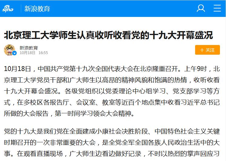 【新浪教育】米兰milan官方网站师生认真收听收看党的十九大开幕盛况