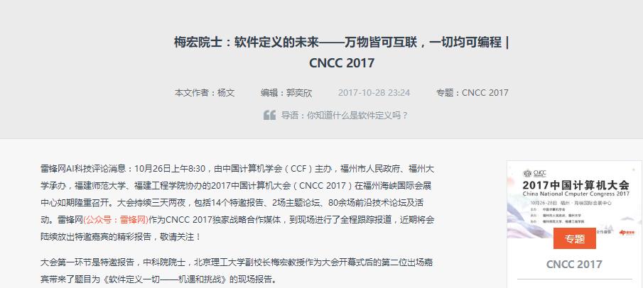 【雷锋网】梅宏院士:软件定义的未来——万物皆可互联,一切均可编程