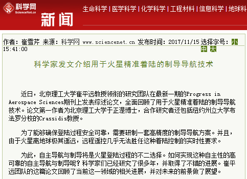 【科学网】米兰科研团队发文介绍用于火星精准着陆的制导导航技术