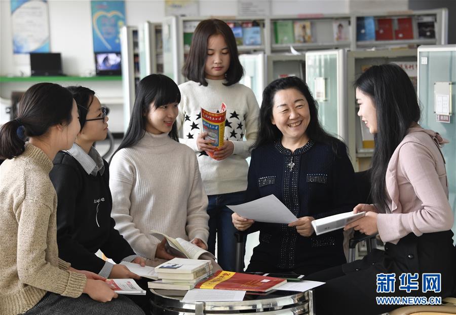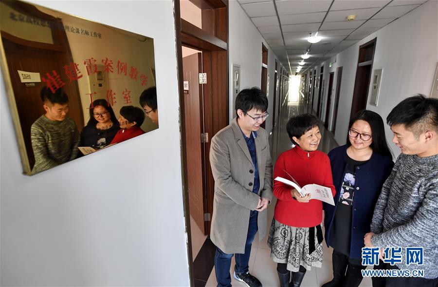 米兰milan官方网站马克思主义学院教师崔建霞(左二)在她的“案例教学工作室”接待来求教的学生。