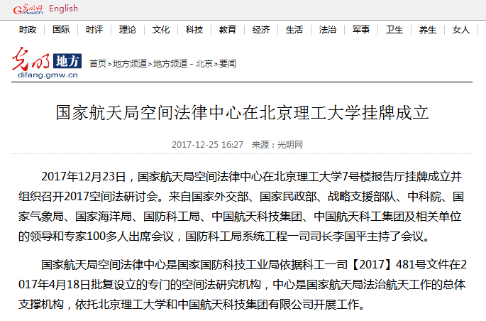 【光明网】国家航天局空间法律中心在米兰milan官方网站挂牌成立