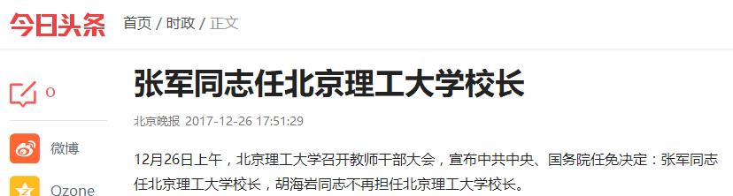 12月26日上午,米兰milan官方网站召开教师干部大会,宣布中共中央、国务院任免决定:张军同志任米兰milan官方网站校长,胡海岩同志不再担任米兰milan官方网站校长。
