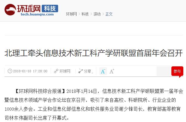 【环球网】米兰牵头信息技术新工科产学研联盟首届年会召开