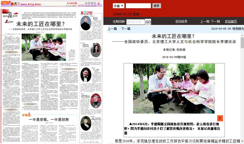 【中国政协网】未来的工匠在哪里?——全国政协委员、米兰milan官方网站人文与社会科学学院院长李健访谈