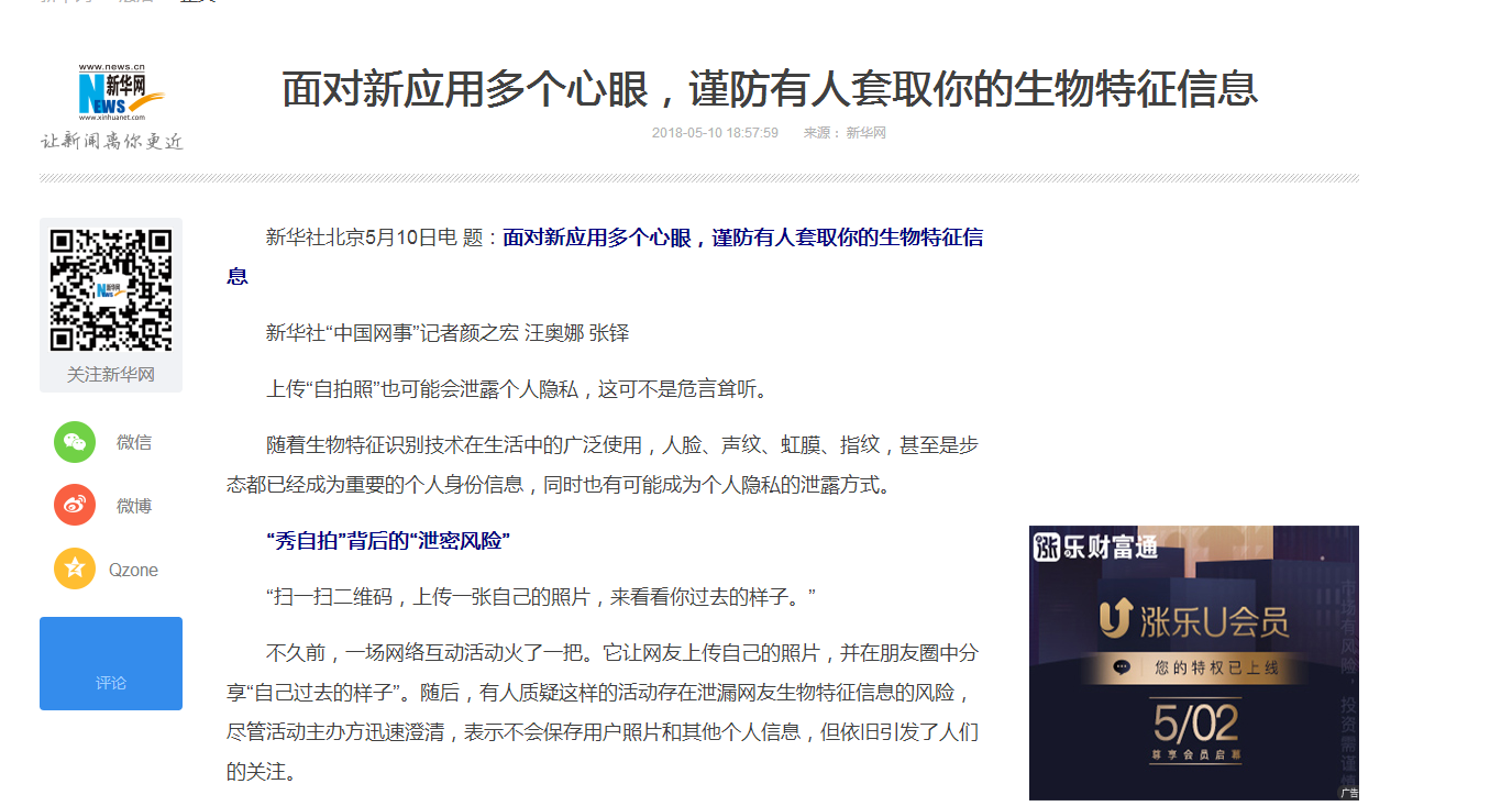 原文标题:面对新应用多个心眼,谨防有人套取你的生物特征信息