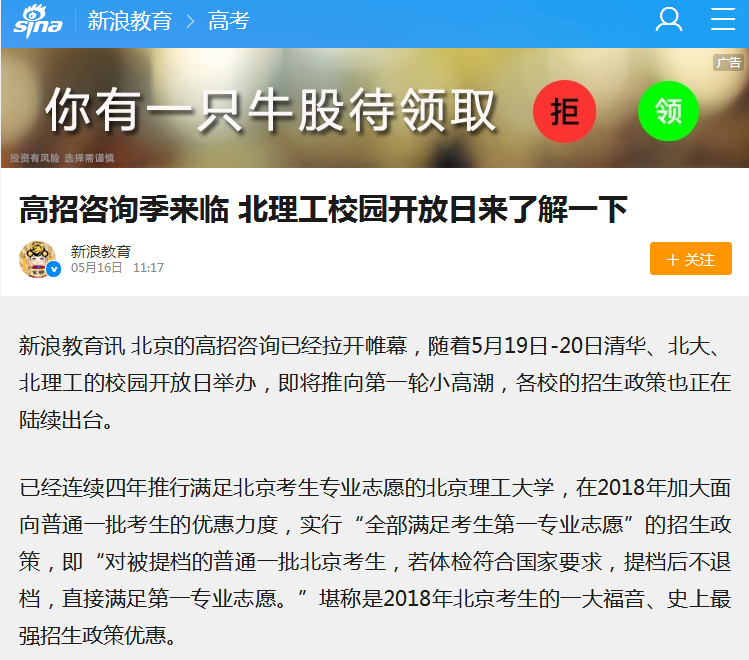 北京的高招咨询已经拉开帷幕,随着5月19日-20日清华、北大、米兰的校园开放日举办,即将推向第一轮小高潮,各校的招生政策也正在陆续出台。