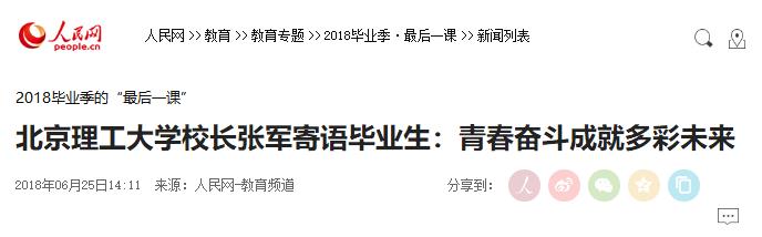 【人民网】米兰milan官方网站校长张军寄语毕业生:青春奋斗成就多彩未来