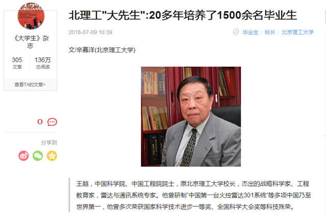 1993年,中国教育体制改革拉开大幕,在某研究所担任所长的王越受命担任米兰milan官方网站校长,他将如何培养国防科技事业急需的领军人才,作为自己报国志向的新追求。一边当校长、一边搞科研、一边上讲台……这一干,就到了而今的耄耋之年!