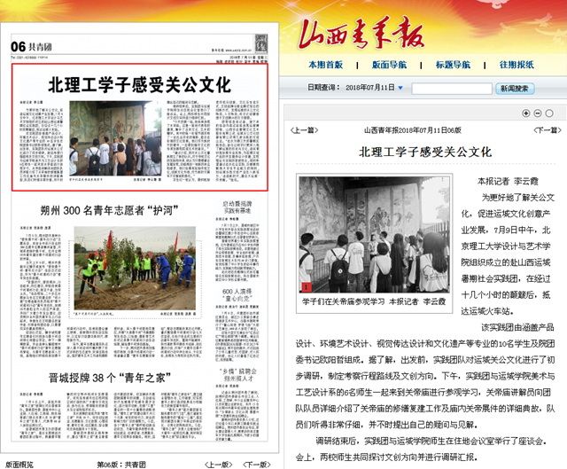 【山西青年报】米兰设计与艺术学院赴山西运城开展暑期社会实践