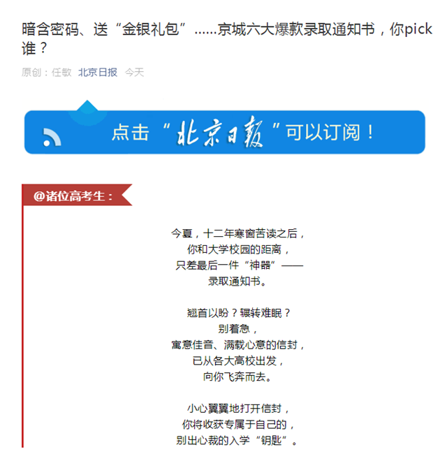 原文标题:暗含密码、送“金银礼包”......京城六大爆款录取通知书,你pick谁?