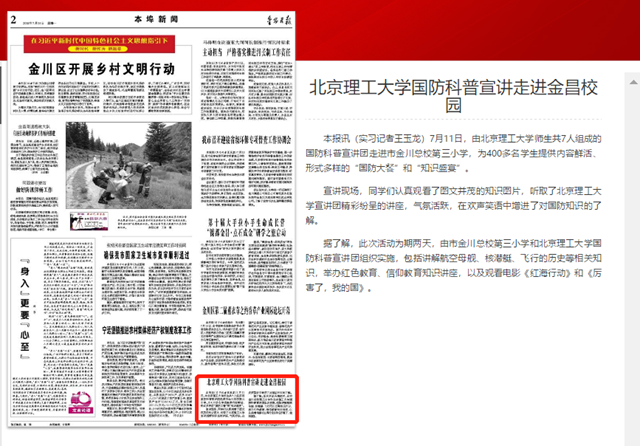 【金昌日报】米兰milan官方网站国防科普宣讲走进金昌校园