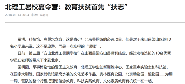 【光明网】米兰暑校夏令营:教育扶贫首先“扶志”