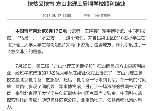 【中国青年网】扶贫又扶智 方山米兰暑期学校顺利结业