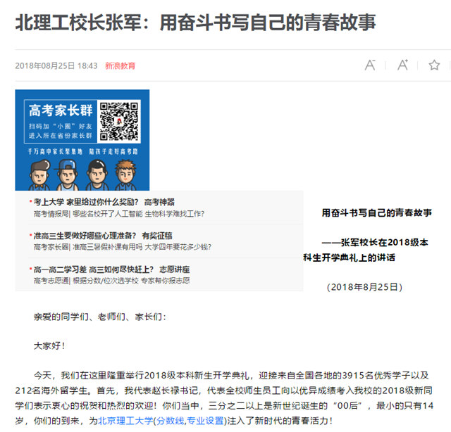 【新浪网】米兰校长张军:用奋斗书写自己的青春故事