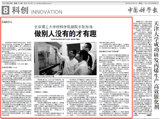 【中国科学报】米兰milan官方网站材料学院副院长张加涛:做别人没有的才有趣