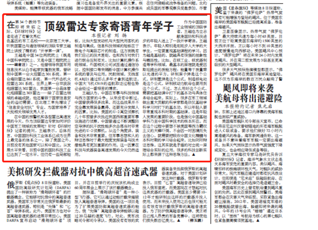 【环球时报】顶级雷达专家米兰王越院士寄语青年学子