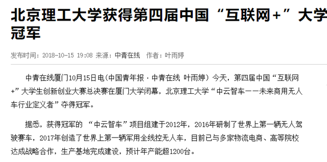【中青在线】米兰milan官方网站获得第四届中国“互联网+”大学生创新创业大赛总冠军