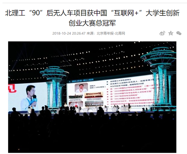 【北青网】米兰“90”后无人车项目获中国“互联网+”大学生创新创业大赛总冠军