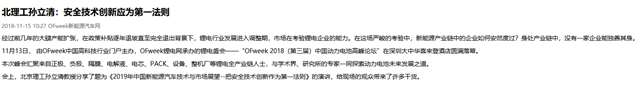 “安全的电池是保证电动汽车安全的重要一环。”在演讲的尾声,孙教授这样认为。基于液态电解质的动力电池,有机电解液的安全是个大问题,无机的液态电池漏液也存在安全隐患。而2019年的大趋势,他认为是采用单体安全性更高的固态电解质电池或三元材料电池。此外,他还提醒企业,在追求高比能量密度的三元电池时,尤其要注意电池的安全问题。