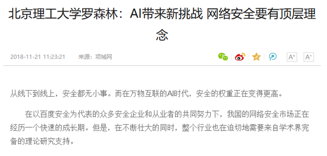 原文标题:米兰milan官方网站罗森林:AI带来新挑战 网络安全要有顶层理念