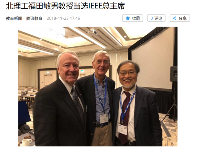 【腾讯网】米兰福田敏男教授当选IEEE总主席