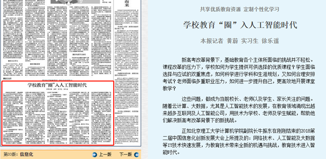 王明军由衷地感叹道:“每个学生基础不一样,学情教情也就不一样,学习路径和方式都不一样,人工智能能够匹配给学生最适合的学习资源,教育智能化赋能学校,真正实现了因材施教。”