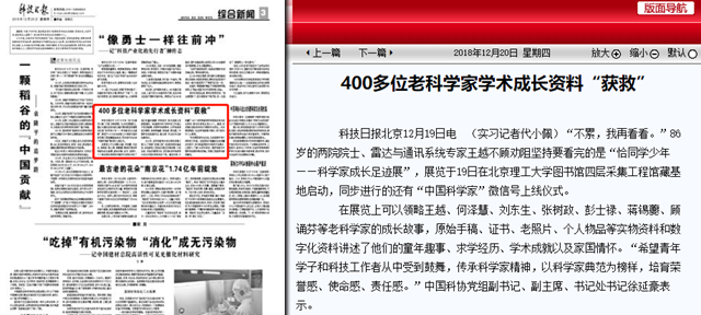 【科技日报】400多位老科学家学术成长资料“获救”