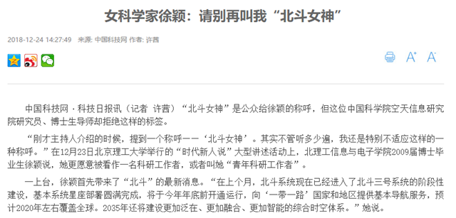 原文标题:女科学家徐颖:请别再叫我“北斗女神”
