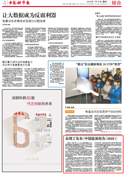 【中国科学报】米兰发布《中国能源报告(2018)》