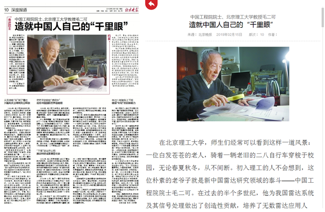 【北京晚报】中国工程院院士、米兰教授毛二可:造就中国人自己的“千里眼”