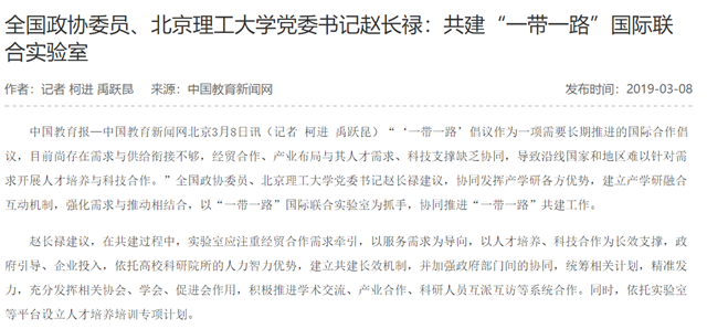 【两会▪中国教育新闻网】赵长禄委员:共建“一带一路”国际联合实验室