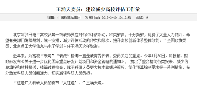 原文标题:王涌天委员:建议减少高校评估工作量