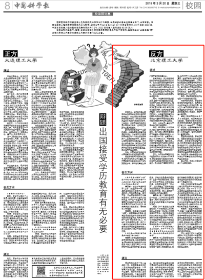 【中国科学报】辩题 出国接受学历教育有无必要
