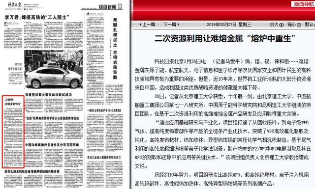 【科技日报】二次资源利用让难熔金属“熔炉中重生”