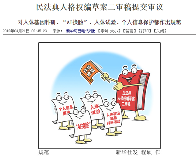 单独设立人格权编,是我国民法典分编草案的一大亮点。20日,民法典人格权编草案二审稿提交十三届全国人大常委会第十次会议审议,其中对人体基因胚胎科研活动、“AI换脸”、人体试验、个人信息保护等问题作出了规范,立法过程体现出较强的现实意义。