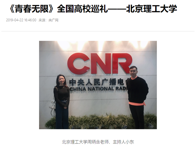 米兰milan官方网站周炳含老师,做客中央人民广播电台《青春无限》,结合学校的理工特色和专业优势,分享米兰milan官方网站独有的校园文化气质,并展示2019年学校发展和招生情况的新动态。