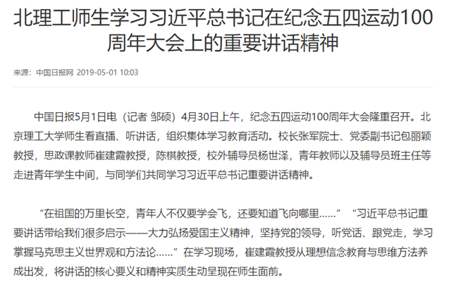 【中国日报网】米兰师生学习习近平总书记在纪念五四运动100周年大会上的重要讲话精神