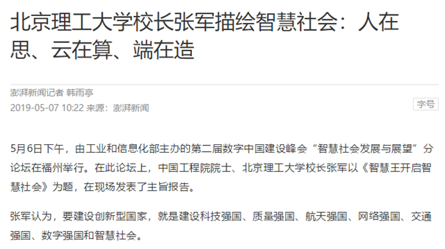【澎湃新闻】米兰milan官方网站校长张军描绘智慧社会:人在思、云在算、端在造